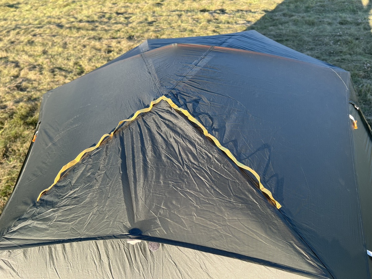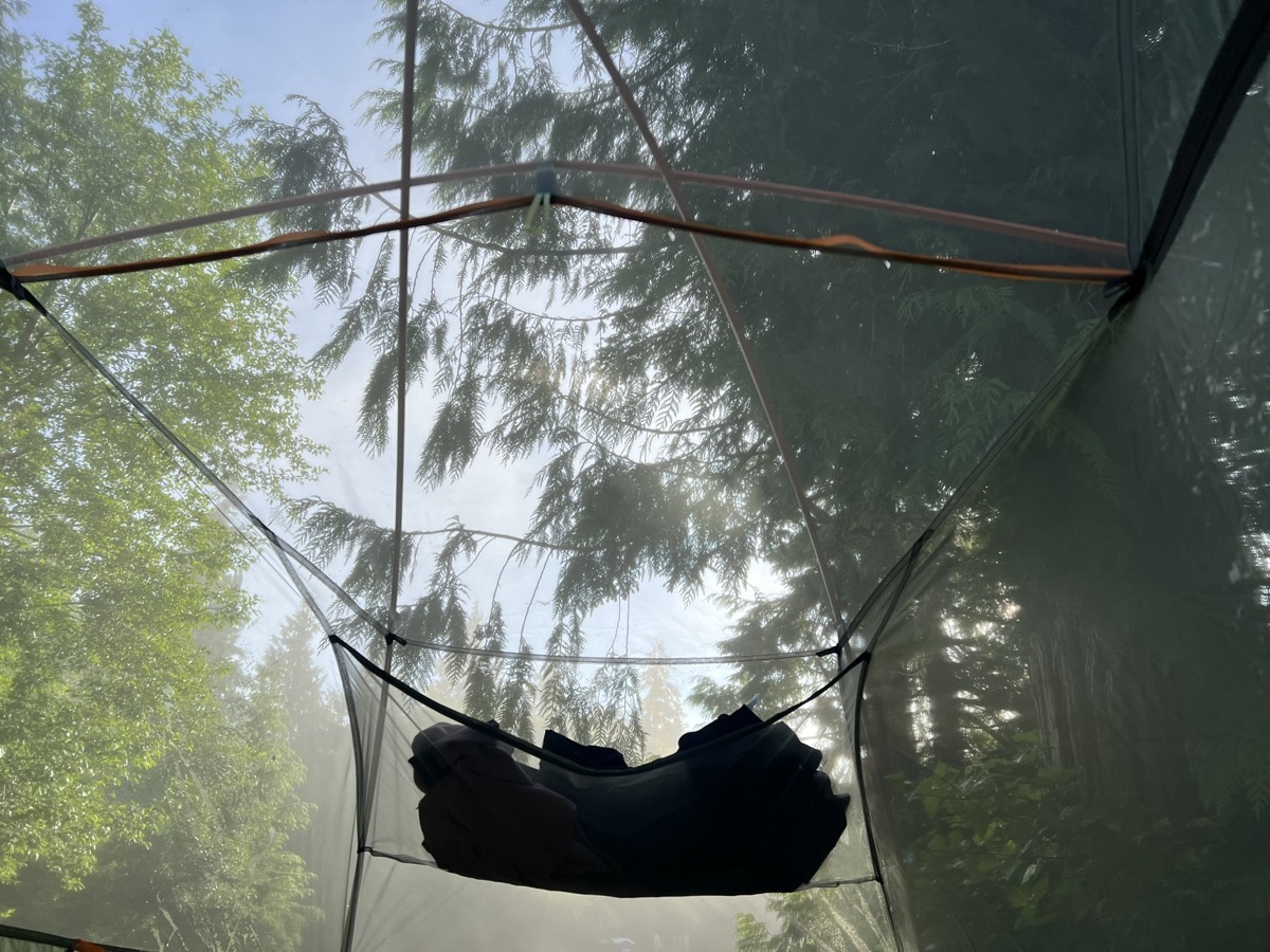 Předsíně jsou totiž dostatečně velké na to, aby pojmuli tretry, helmy, baťohy i brašny v případě nutnosti. Tropiko má dva zipy, jeden na straně a jeden uprostřed. Pro opravdu pohodlný vstup a výstup je dobré použít oba. Pokud stan vezmeš na hike a máš trekové hole, nebo najdeš pěkné klacky můžeš ze vstupu udělat stříšku.