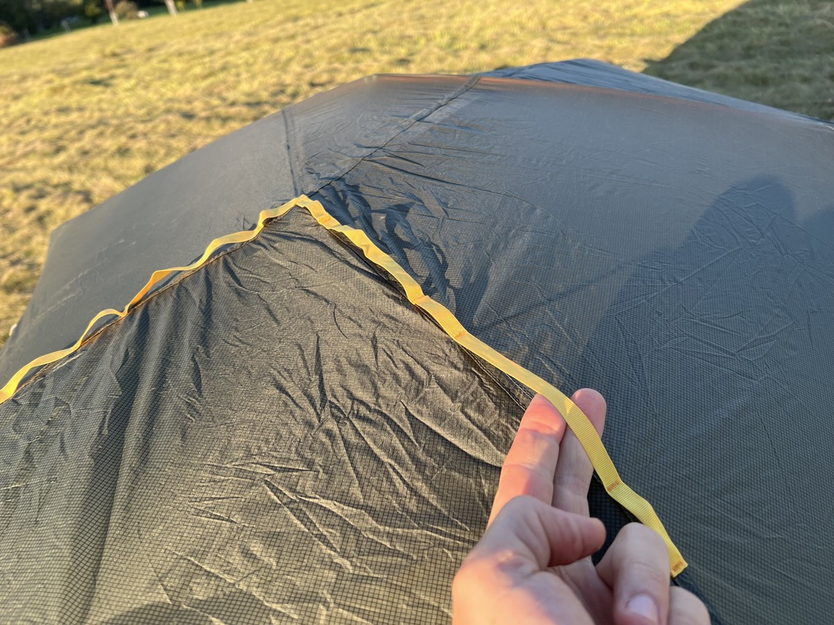 Co nám naopak chybělo jsou větší oka u lanek v rozích, u hlavy i nohou. Pokud nemůžeš použít kolíky, potřebuješ třeba zatížit stan přivázáním šutrů na lanka.