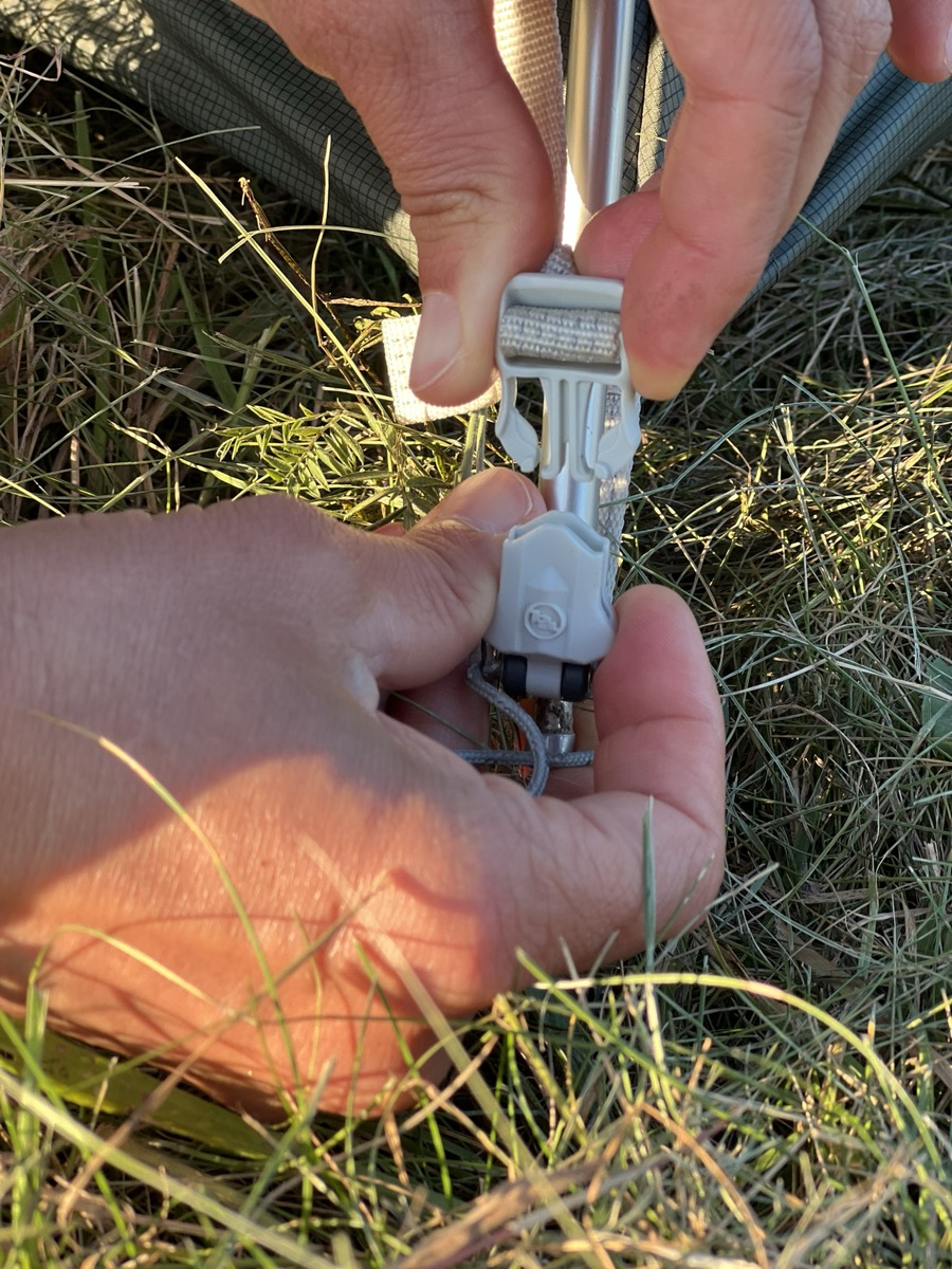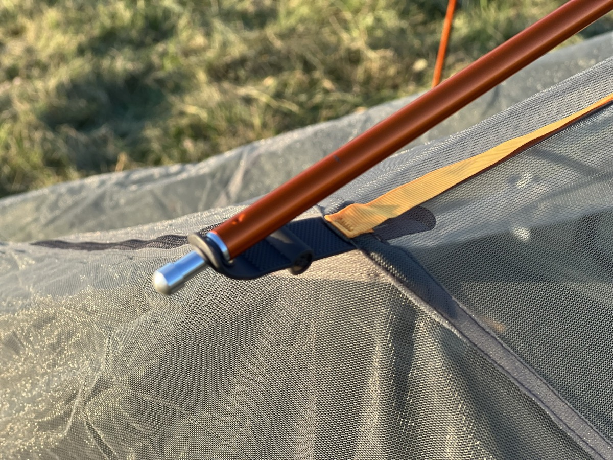 Tropiko a vnitřní stan jsou od sebe dostatečně vzdálené, aby nedošlo ani při silném větru ke kontaktu a případnému promoknutí. Kolíky jsou pevné a lehké, nemáš šanci je ohnout, jediné co, že se v drážkách zachytává bordel, očistíš je ale lehce. Skvělým detailem jsou malé lanka na každé tyčce, díky kterým jdou lehce vytáhnout ze země.