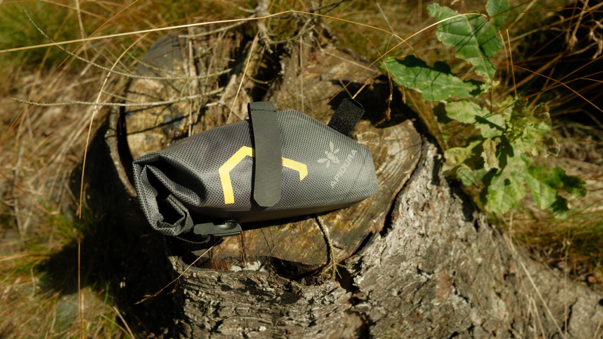 Předchůdce této mini podsedlové brašny se jmenoval stejně, jen měl objem půl litru – a to se ukázalo jako nedostatečné, protože jsem do něj všechno potřebné prostě nedokázal dostat. Jo, můžete argumentovat, že od toho jsou kapsy na dresu, ale mně nářadí a další věci na zádech prostě vadí a přes to vlak nejede. Takže jsem byl moc zvědavý, jestli o půl litru větší brašna bude dostačující. Ještě než vám řeknu verdikt, podíváme se na ni trochu detailněji.