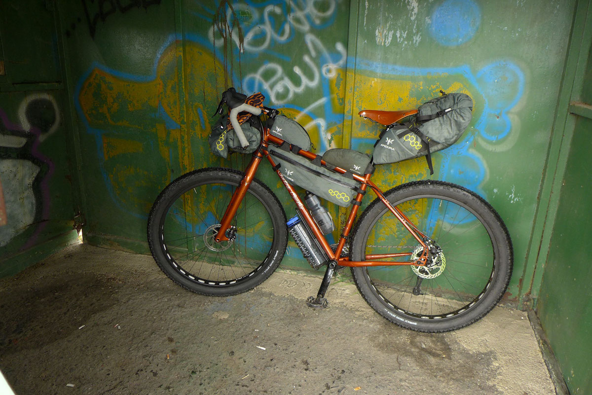 Je neděle půl sedmé ráno a já zjišťuji, že jak si kdo ustele, tak si lehne. Jako správný bikepacker jsem přehlédl, že jsem si tarp sice krásně napnul, že se mi pod něj vešlo i kolo, karimatka, spacák a vše potřebné, ale jaksi jsem přehlédl, že v nohách je mírná proláklina do které mi z tarpu natekla voda a tak teď mám mokrou přilbu a navlhlou karimatku. Ještě, že dnes jedu směr domov. Za stáleho deště si vařím kávu, posnídám Májku s chlebem a začínám balit. Konečně je vše zabaleno a zbývá smotat už jenom, z vnější strany, totálně mokrý tarp. Po pár marných pokusech o řádné složení tarpu do obalu to vzdávám a na prasáka ho do obalu narvu. Bohužel zjišťuji, že nejenom prší, ale že i teplota značně poklesla. Rvu na sebe primaloftku a přes ní nepromok a nasedám, abych se co nejrychleji zahřál šlapáním.