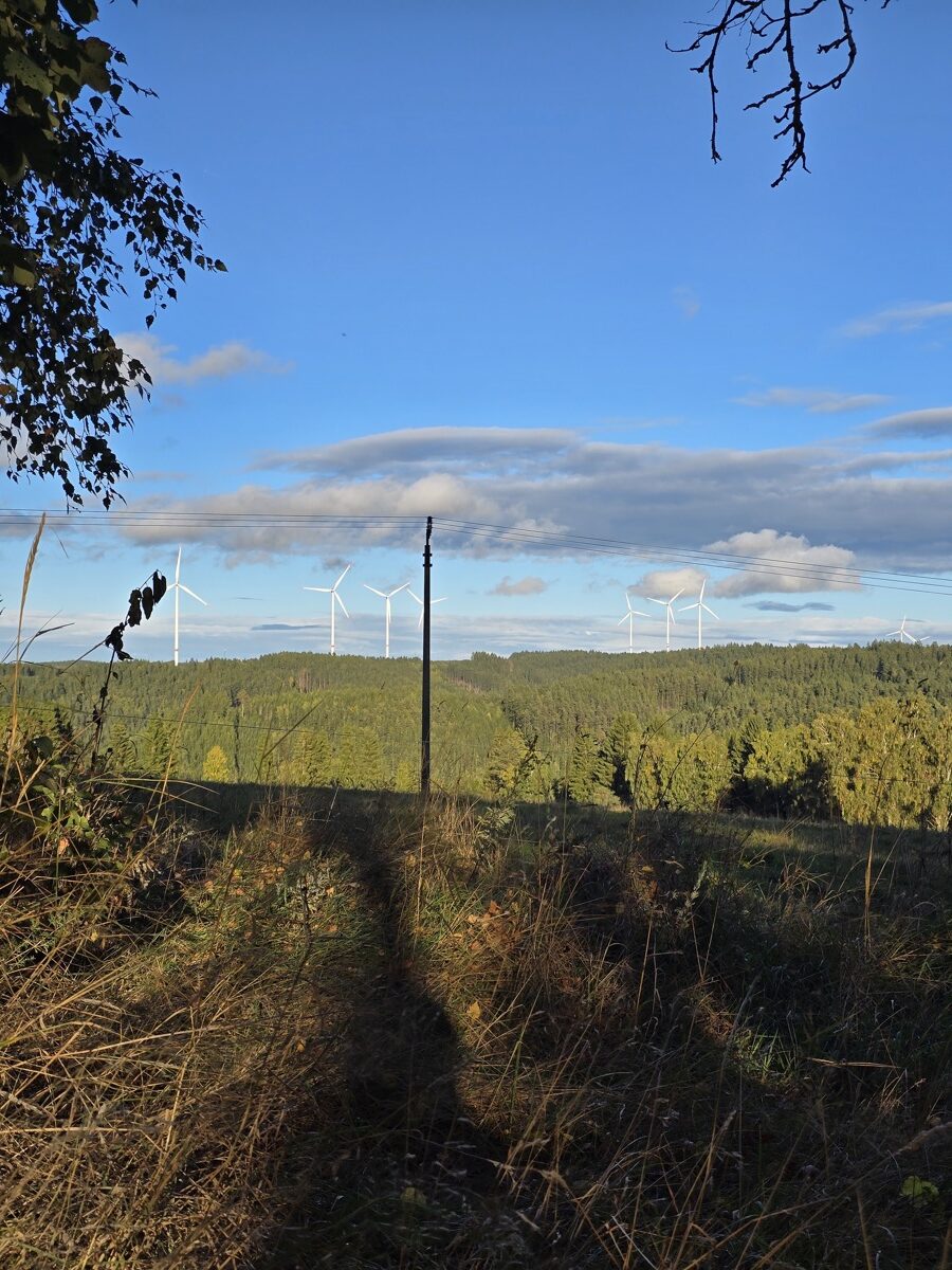 Už dlouho jsem nepotkal žádný obchod, a tak si říkám, že raději nakoupím hned v prvním, který potkám. Dochází mi pití. Projedu Mníšek a Novou Ves v Horách, kde by podle mapy měl být obchod. Je to sice zajížďka, ale nevadí. Obchod je zároveň i pošta – moc toho tu nemají, alespoň ne k jídlu. Dávám si studené pivo a jedu dál. Projedu Horou Svaté Kateřiny a přijíždím k vodní nádrži Fláje, nad kterou se točí několik větrných elektráren. Kus cesty jedu okolo nádrže a mířím na Cínovec. Konečně obchod – zvenku to vypadá jako hraniční shop s trpaslíky, ale zdání klame: vevnitř velká vietnamská večerka, kde mají snad všechno, co naše obchodní řetězce. Nakoupím si toho raději víc, kdybych už zbytek dne na žádný další obchod nenarazil. Váha batohu poněkud vzrostla, ale nevadí.