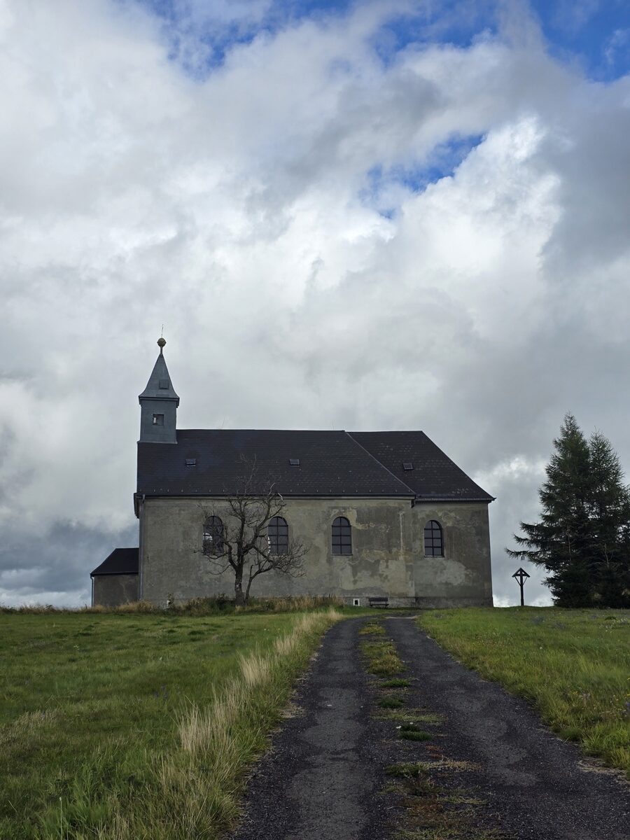Od Přísečnice vede cesta krásnou přírodou a to si užívám. V osadě Malý Háj potkávám kostel Nejsvětější Trojice – na vršku, odkud je pěkný výhled na všechny strany. Rozhodně stojí za to se tu zastavit.