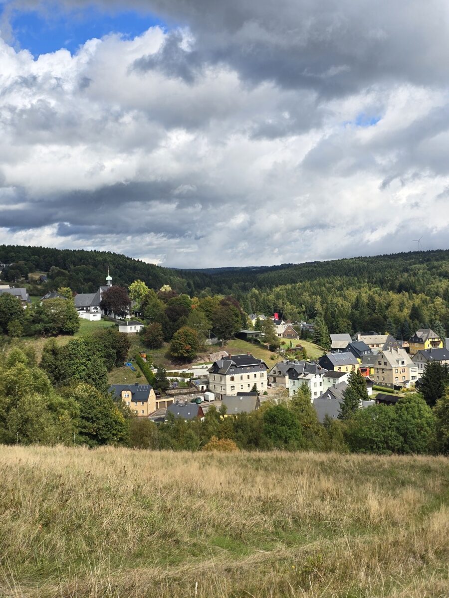 Přijíždím do Božího Daru, krásného městečka. Před infocentrem mají velkého dřevěného Ježíška a schránku na dopisy pro něj. Prohlédnu si městečko a pokračuji do Německa. Po překročení hranice sjíždím do Oberwiesenthalu – připadám si jako v alpském městečku.